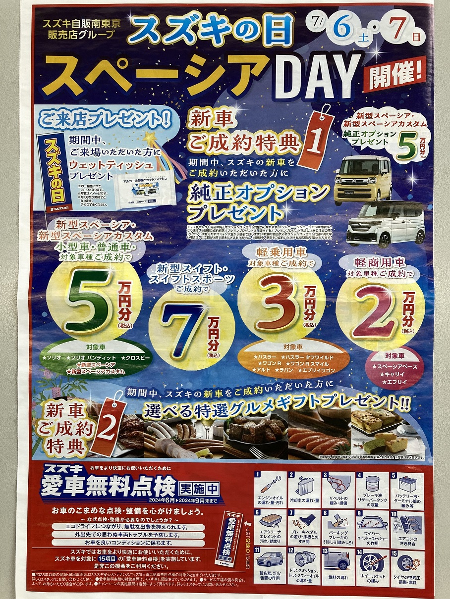 さてさて明日から恒例の【スズキの日/スペーシアDAY】となります♪